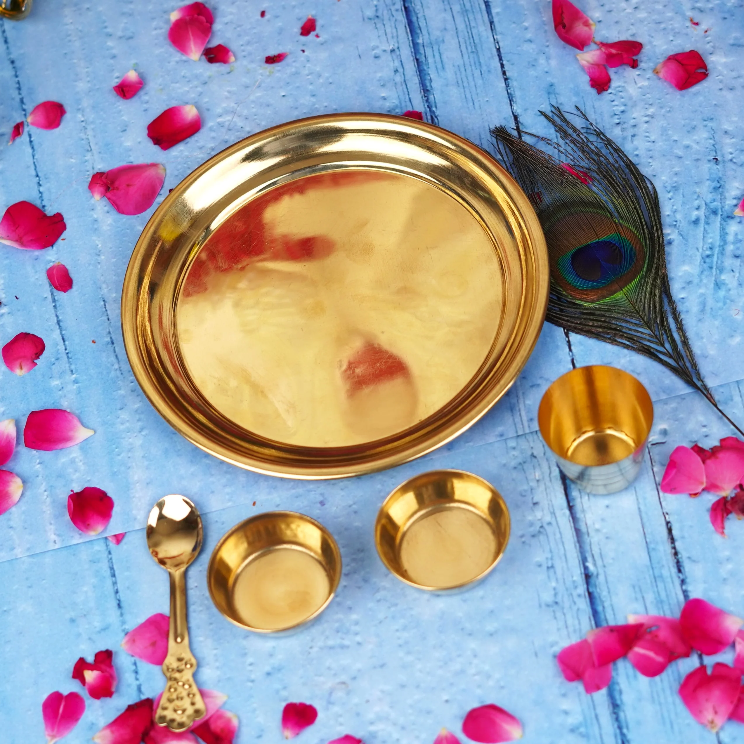 Pure Brass Laddu Gopal Bhog Thali 5 Pcs Set of 2